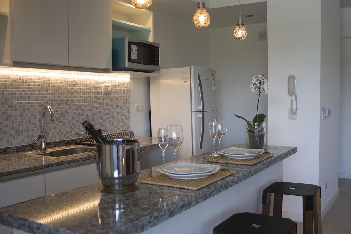 Departamento nuevo, moderno y luminoso. Construido de hormigón a la vista (edificio), decorado minimalista. Posee calefacción por losa radiante, cocina americana totalmente equipada, amplia terraza con parrilla privada, cama king size, smart tv, tv por cable, wifi.